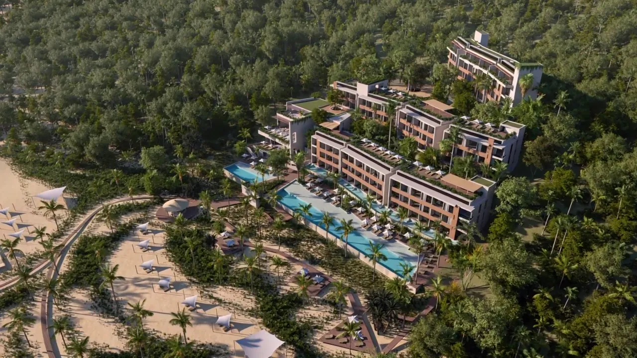 Principalmente tres cosas: ubicación en la zona de mayor crecimiento, playas sin problema de sargazo que garantizan operación constante y un proyecto concebido desde el inicio para inversión turística, no solo para vivienda. En resumen, no es solo frente al mar, es estar donde la ciudad se está valorizando.